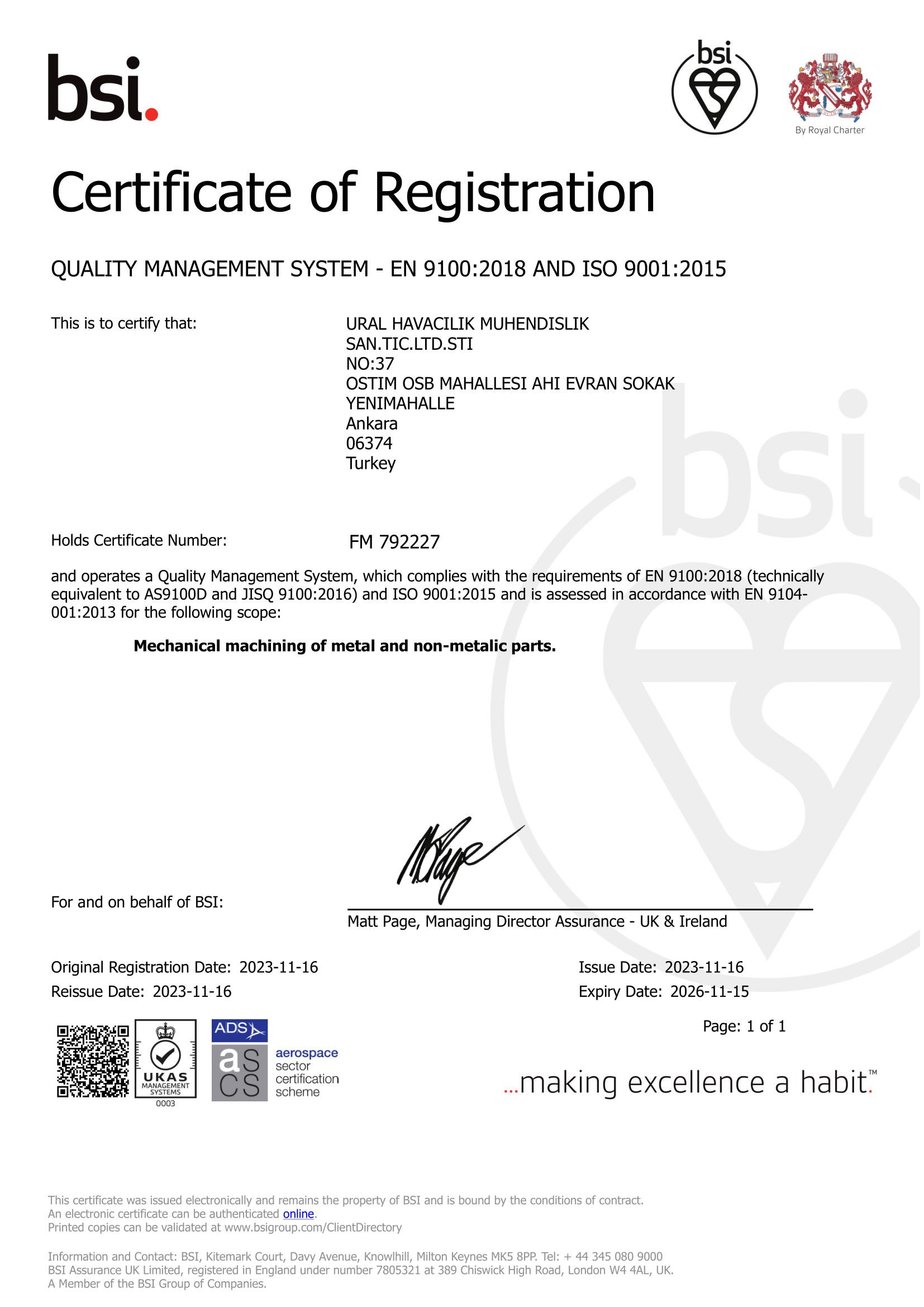 Ural Havacılık talaşlı imalat sektöründe sivil havacılık parçalarının imalatında hizmet vermek amacı ile kurulmuştur.